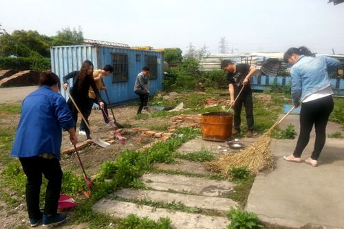 劳动中,大家不怕苦、不怕累,干劲十足,有的用铁锹平整场地,清理枯草,运走碎石砖块;有的用笤帚清扫白色垃圾、用手捡拾地上的纸屑、烟头,大家热火朝天地投入到劳动中。