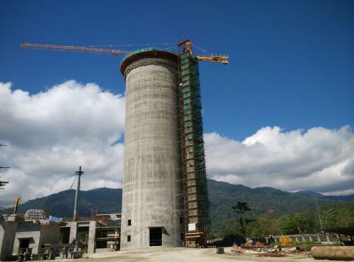 国投印尼巴布亚水泥工程生料库高54m,库内径18m,库壁厚0.38m。滑模施工前,项目部针对该生料库的特点及施工时所面临的困难,从人员、材料、机器设备、安全等多方面进行细致的准备,做到安全技术交底责任到人,并多次组织业主、监理和参战人员召开滑模专题会议,反复论证,形成科学的工序方案。滑模期间,参战人员不分昼夜,全力克服高温暴雨等困难,积极践行“24小时工作法”,最终确保砼浇筑的质量和标准,使生料库垂直度、外观及砼强度均符合规范要求。