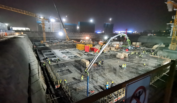 经过18小时的连续奋战,3月21日下午,中冶陕西投资建设有限公司承建的中冶·德贤府邸项目完成了筏板基础首次混凝土浇筑作业。