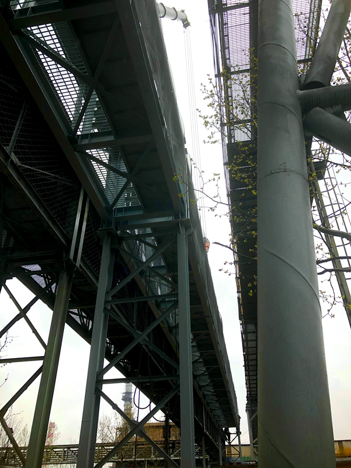 4月2日,中国十七冶集团承建的莱钢能源动力厂型钢变电站35kV电缆改造项目进行狭窄空间内的长跨度电缆通廊吊装作业,高效顺利地完成高难度施工作业。