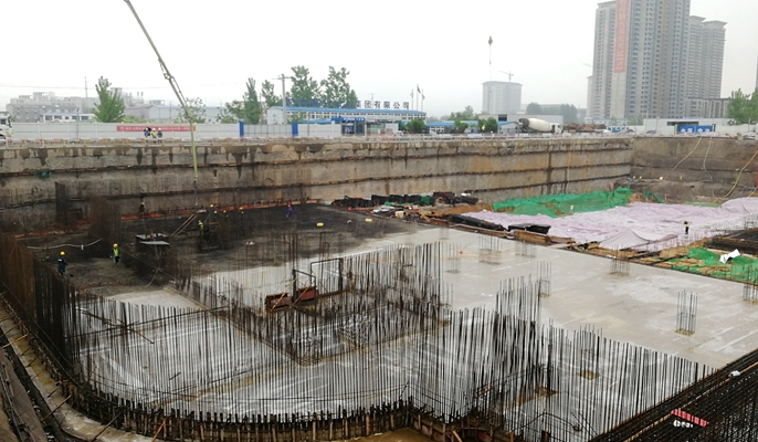 为确保筏板的施工质量,施工前,项目部严格技术交底,对各类进场材料、钢筋焊接质量、钢筋绑扎、模板搭设等进行了全面检查,最终一次性通过验收。在首块筏板浇筑施工过程中,项目部管理人员全程跟班作业,全方位、全过程进行严格把控和指导,顺利完成了首块筏板浇筑,全面迈入施工大干关键期。自去年年底开工以来,项目面对国内严峻的疫情、地基基础复杂、降雨频繁等诸多困难,项目部全体人员团结一致,群策群力,确保了项目各项工作快速启动。