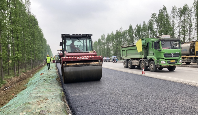 4月27日,中国十七冶集团路桥工程技术分公司承建的G206蕲县北至怀远界段改造工程新建机动车道开始沥青路面下面层试验段摊铺。