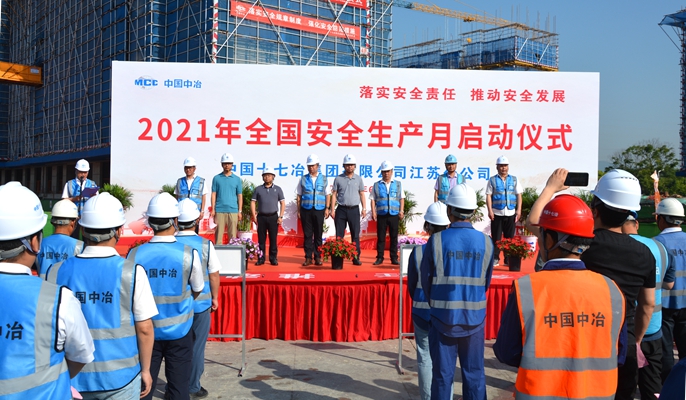6月1日上午,为深入落实安全责任,提升公司安全生产意识以及安全管理水平,中国十七冶集团江苏分公司在南京高新1号地块经济适用房项目举办“安全生产月”启动仪式。江苏分公司领导班子全体成员,建设单位南京康居集团谒民公司总经理邵世明、副经理张宝云、业主代表邵长军,监理单位江苏雨田工程咨询公司总监梁成,机关各部门代表及施工队伍代表约200人参加活动。