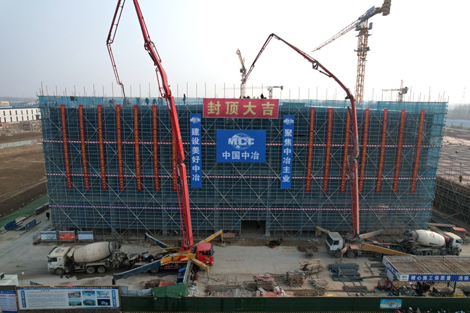 1月18日上午,随着最后一方混凝土的浇筑,中国十七冶集团江苏分公司承建的吴江泗阳工业园电子信息产业园标准化厂房建设工程项目1#楼首段主体封顶。