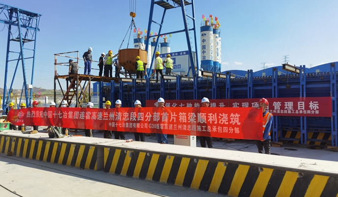 6月15日下午,中国十七冶集团路桥工程技术分公司承建的G30连霍高速兰州清忠段施工总承包四分部项目什川服务区大桥首片预应力砼预制箱梁顺利完成浇筑,拉开全线预制箱梁生产施工的序幕。
