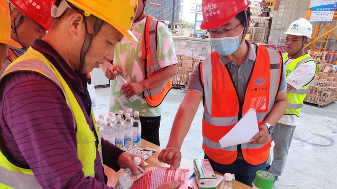 6月16日是第21个“安全生产宣传咨询日”,为开展好这次宣传咨询日活动,泗县鹿鸣山庄项目部在项目现场搭设安全生产宣传咨询台,为一线作业人员解答安全生产相关问题,发放安全生产宣传书,并为一线作业人员,准备了盐汽水、风油精等一系列防暑物品。项目部在帮助一线人员增强安全责任意识的同时,积极营造了“安全生产月”的活动氛围。