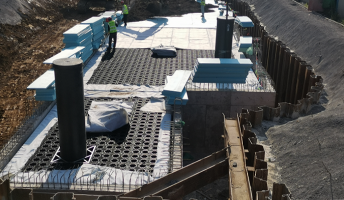 8月10日,由中国十七冶集团有限公司冶金工程技术分公司承建的集成电路标准化厂房二期项目室外工程,顺利完成500立方米雨水收集池模块安装任务,并完成隐蔽验收工作,为后续道路施工争取了宝贵时间。