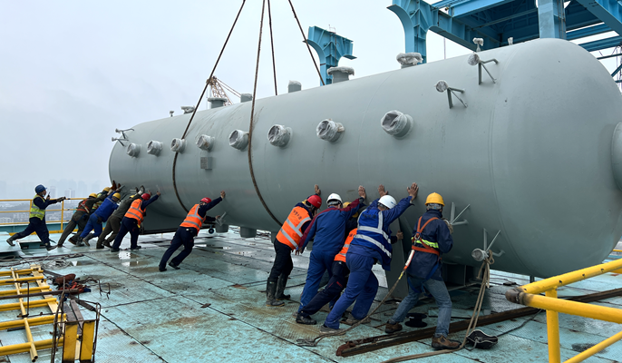为确保此次汽包设备的顺利吊装,项目团队不惧艰难,提前策划,精心组织,积极克服汽包设备重、吊装平台高等不利因素,严格按照吊装方案落实执行,安排多名技术人员旁站监督,在62米平台上管理人员与作业人员严阵以待,大家众志成城、齐心协力,最终顺利完成吊装任务。年关将至,项目部将始终秉承“一天也不耽误,一天也不懈怠”的企业精神,践行“24小时工作法”,安全高效地完成各项施工任务。