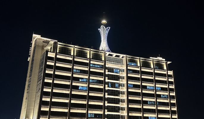 2月28日晚间,在夜幕的映衬下,中国十七冶城建分公司建设中的智慧灵璧项目绚丽多彩,项目幕墙外立面成功亮灯。