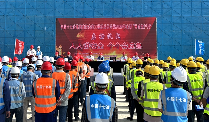 6月1日上午,中国十七冶建安分公司各项目开展了以“人人讲安全、个个会应急”为主题的“安全生产月”启动仪式。