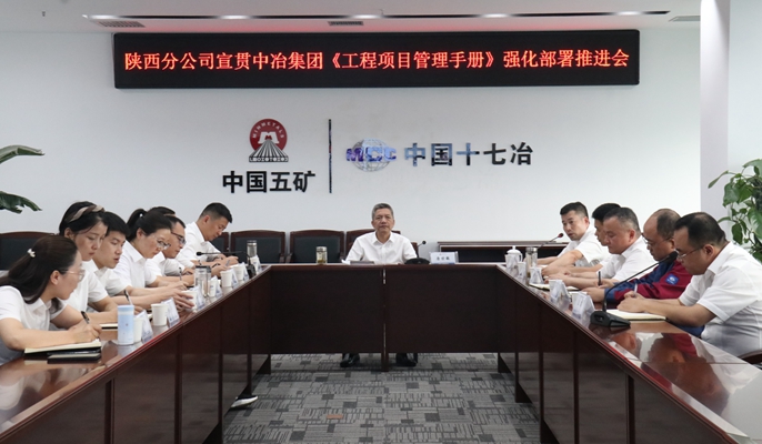 6月18日下午,中国十七冶陕西分公司召开宣贯中冶集团《工程项目管理手册》(以下简称《手册》)强化部署推进会。分公司领导班子、经理助理、副三总师,机关各部门负责人,各项目部领导班子及部门负责人等参加会议。