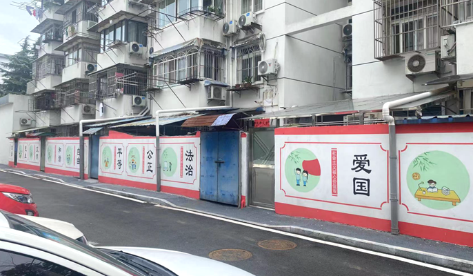 为进一步推进老旧小区改造,提高居民的幸福生活指数,中国十七冶项目团队联合街道社区党委等单位,聘请专业公司,增加改造“绘制文化墙”这一新内容。此次墙体彩绘以“邻里共建+童心绘梦”“文明建设+党建”为主题,内容涵盖“全民健身”“温馨邻里”“文明养宠”“敬老爱幼”“垃圾分类”“党建引领”“崇尚公德”等。完成后的文化墙风格多样,映入小区百姓眼帘的是颜色鲜艳、生动活泼、寓意深刻、喜闻乐见、营造生活气息的墙绘,人居环境变得更加干净整齐,营造出良好的社会风尚、和谐的人居氛围。