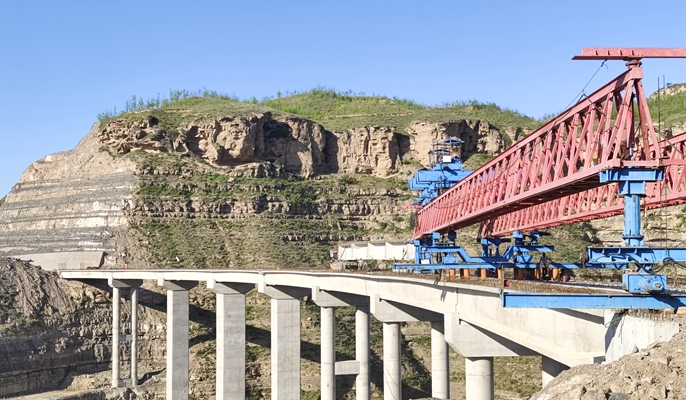 山西黄河一号旅游公路石楼段闫家洼大桥T梁架设完成