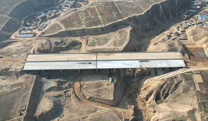 连霍高速兰州清忠段槽沟大桥全幅铺装完成