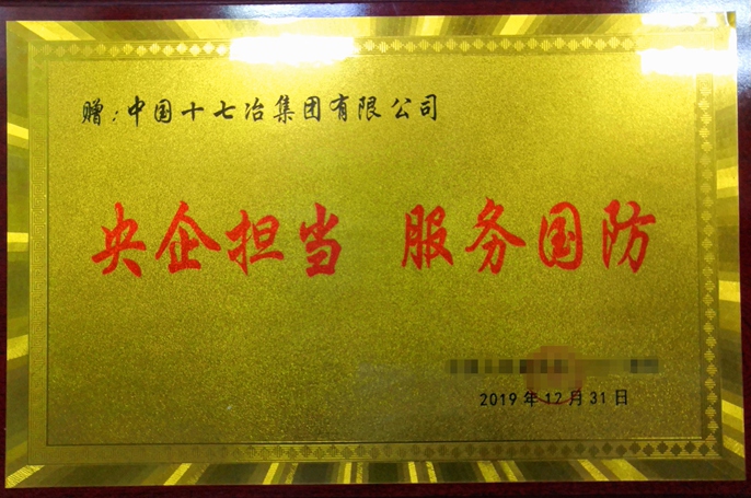 2019年12月31日,中国十七冶集团酒泉项目收到来自中国人民解放军某部的表扬信,并收到该部授予的“央企担当,服务国防”荣誉称号,并对中国十七冶集团有限公司在酒泉电厂项目所做的贡献进行了高度评价。