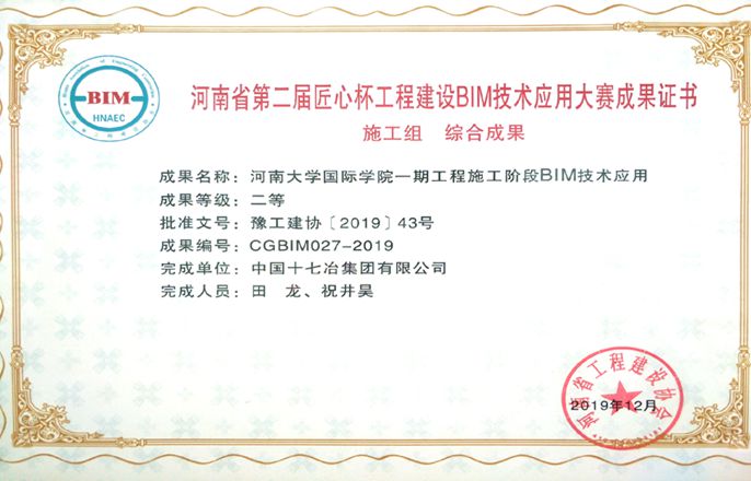 十七冶项目获河南“匠心杯”BIM技术应用二等奖
