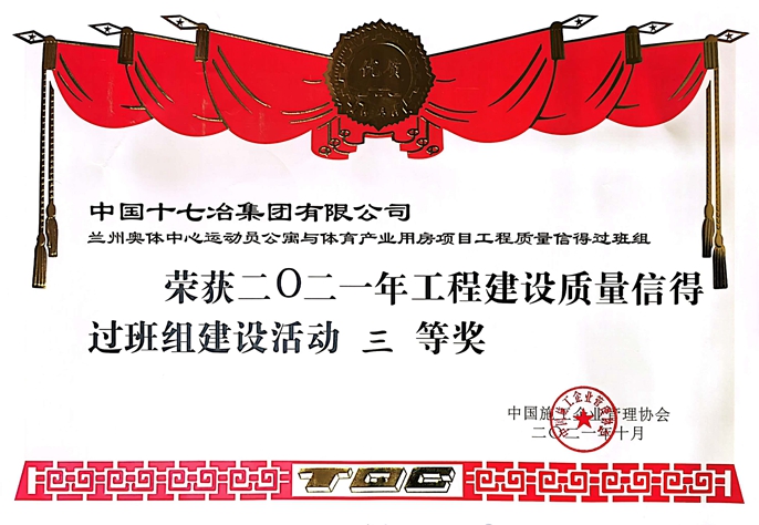 近日,中国十七冶集团甘肃分公司承建的兰州奥体中心配套和附属设施项目在中建协与中施协两大建筑协会2021年度质量班组评选活动中荣获三等奖。