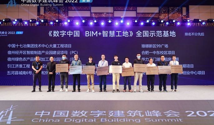 9月8日,安徽省建筑业协会、安徽省建设工程造价管理协会、安徽省工程勘察设计协会、广联达科技股份有限公司联合主办的“中国数字建筑峰会2022·安徽峰会”在合肥召开,中国十七冶集团有限公司技术中心大厦工程项目和五河县城南6号、7号和9号地块棚户区改造项目获《数字中国 BIM+智慧工地》全国示范基地授牌。