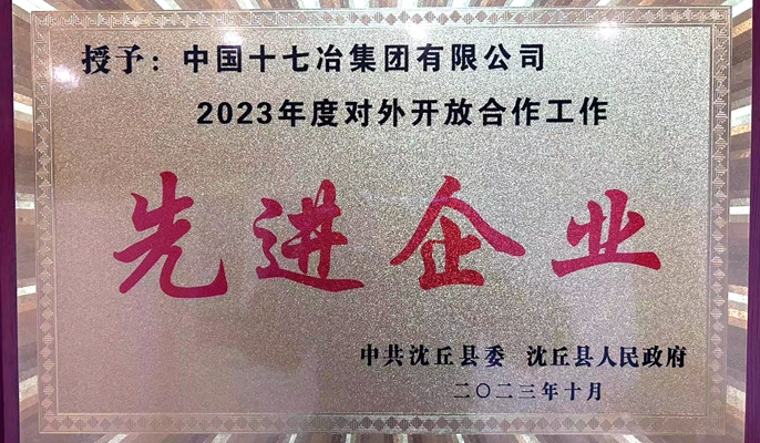 近日,河南省周口市沈丘县举办对外开放合作大会,中国十七冶集团获评沈丘县2023年度“对外开放合作工作先进企业”称号。
