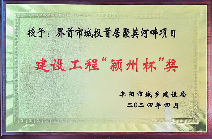 界首市城投首居聚英河畔项目获阜阳市建设工程“颖州杯”奖