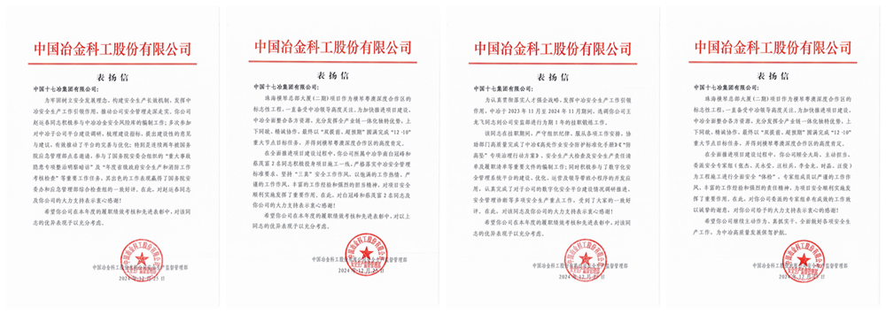 近日,中国中冶向中国十七冶发来4封表扬信,对公司积极选派优秀干部员工,助力推进中国中冶重大项目和重点任务给予充分肯定,对在安全生产领域作出重要贡献、圆满完成集团公司各项任务安排的干部员工提出表扬。