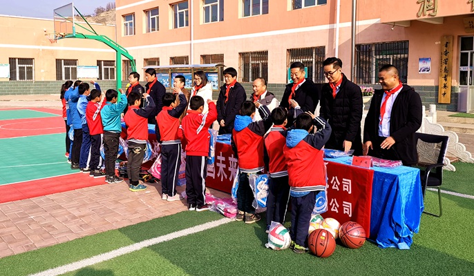 在甘肃省榆中县金崖镇金崖村明德小学,十七冶西北公司和五矿钢铁兰州有限公司一行为学校捐赠了足球、篮球和乒乓球台等体育用品,为24名贫困学生送上了书包、文具盒、铅笔、笔记本和读书卡等礼物,并叮嘱孩子们要养成良好的品德,树立远大理想,珍惜美好时光,勤奋学习。明德小学位于甘肃省榆中县金崖镇金崖村,距兰州市18公里,是一所六年制完全小学,在校学生365人,本次受助的学生大部分是留守儿童。十七冶榆中棚改项目部驻地位于明德小学附近,项目负责人表示,在做好榆中县基础设施建设的同时,将进一步加大资助力度,将企业爱心传递下去。