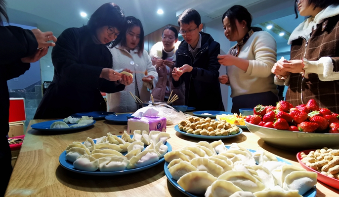 联欢会上,南京分公司工会主席张忠为青年员工们送上了新年祝福,表达了对他们在新的一年里的殷切期盼。青年员工欢聚一堂,积极展现个人才艺,赢得了大家的阵阵掌声。特别是包饺子活动,大家一起一边包着饺子,一边亲切交谈,交流工作、生活和学习情况。青年员工们也渐渐敞开心扉、畅所欲言,就生活上的困难、工作上的疑惑作了交流。大家吃着自己包的饺子,欢声笑语不断。