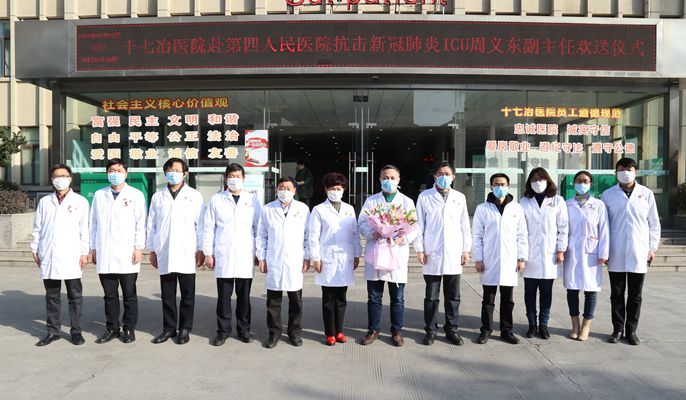 2月22日上午,十七冶医院重症医学科副主任周义东援助马鞍山市第四人民医院抗击新型冠状病毒肺炎疫情。这是十七冶医院第十位援外抗击疫情的勇士。医院党政领导班子,相关部门负责人为周义东送行。