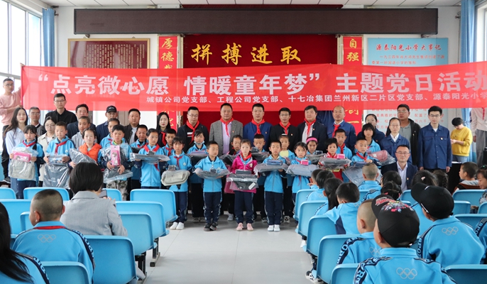 为关爱儿童成长,承担央企社会责任,5月31日,中国十七冶集团甘肃分公司兰州新区二片区项目党支部携手兰州新区城镇开发建设工程有限公司党支部、兰州新区土地开发建设工程有限公司党支部及兰州新区源泰阳光小学联合举办“点亮微心愿,情暖童年梦”主题党日活动。