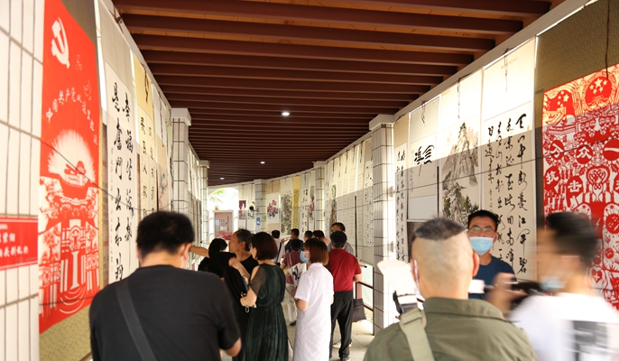 为庆祝中国共产党成立100周年,传承红色基因、践行初心使命、加强医院文化建设,营造和谐的文化氛围,7月20日,十七冶医院与马鞍山市书画协会联合举办的“听党话、跟党走、感党恩”书画剪纸艺术作品展活动拉开帷幕。马鞍山市委宣传部副部长陈学明、市书画协会主席王文、书画协会会员代表及特邀嘉宾,医院党委书记陈斯菊及相关部门负责同志,6名驰援武汉抗疫英雄、医院参加书画展作者和医务工作者代表参加了活动。