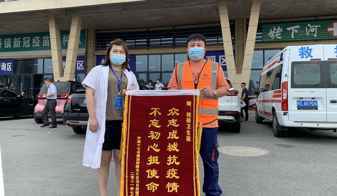 8月9月,中冶置业(安徽)公司郑蒲港片区项目向郑蒲港新区管委会与郑蒲港姥桥卫生院赠送锦旗。两面写有“炎炎夏日送清凉 丝丝关爱暖人心”“众志成城抗疫情 不忘初心担使命”的锦旗,表达了十七冶人对管委会和卫生院在夏日送清凉活动及疫情防控给予温馨关怀与帮助的诚挚感谢。