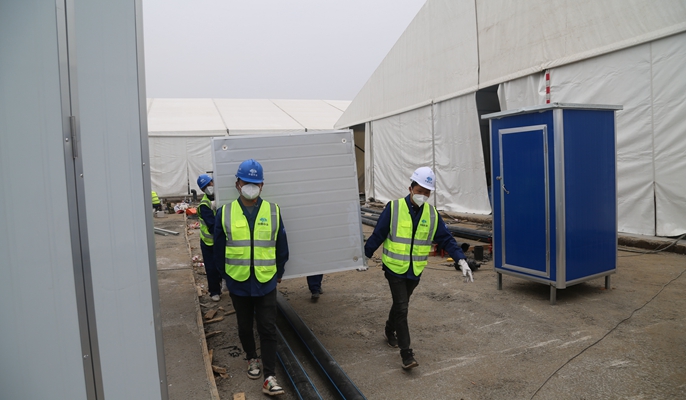 “一切困难都是暂时的,办法总比困难多。”负责物资供应链畅通的吴炜,在现场如同一个大管家,施工进展的关键就在他的手中。水电安装作为整体作业面的最后一个施工阶段,由于现场整体施工所需材料庞大,材料设备经常性出现甲方供应不及时情况,加上现场取材困难导致资源一度匮乏,对工程快速推进带来了极大的考验。协调,协调,再协调!紧急联系了数家兄弟单位,经过紧张的反复协调沟通,对接调剂移动淋浴间、厕所、电热水器等物资后转运至现场。还有一些无法协调且迫切需求的辅料,在打听到可购买的地点后,吴炜便立即前往采购,缓解材料短缺现象,让工程不在自己手里停留一分一秒。“床板、便携式淋浴间已配备到位,快来领取!”随着现场各类施工器具及辅材的配备到位,工程整体建设正在朝着预期目标推进。