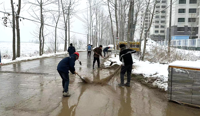 在含山县,阳光世纪城雨污分流改造项目团队秉承暖心服务理念,顶着凛冽的寒风,齐心协力铲冰扫雪,同时救援受困打滑车辆、为环卫人员提供热水和休息场所,尽一切可能提供必要的帮助,不断拉近项目部与小区居民距离,让大家在漫天风雪中感受到阵阵温暖。
