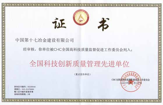 十七冶荣获首批“全国科技创新,质量管理先进单位”荣誉称号
