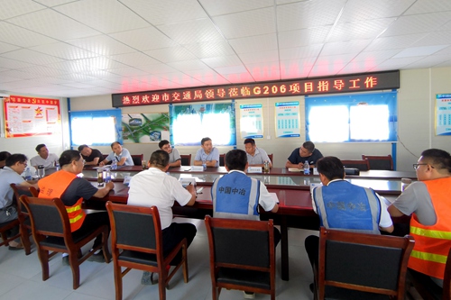 郑晓强科长一行首先来到施工现场,实地查看了工程进展、现场安全文明施工等方面情况,看到紧张有序的施工现场和如火如荼大干氛围给予了高度赞扬,对项目各项管理工作给予充分肯定。他表示,G206项目工期紧,任务重,项目部要继续保持昂扬的斗志,充分调动广大员工的工作积极性,重质量保安全抓环保,严格按照施工规范完成各项施工任务。