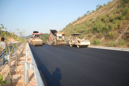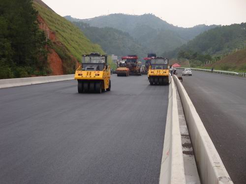 广西马梧高速公路路面三工区全长30.9Km ,沥青路面09年6月28日正式开始施工,项目部克服重重困难,历时132天,安全、优质的完成了全合同段的沥青面层施工任务。