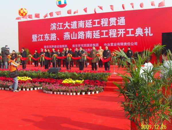 12月26日上午10时,虽然寒风凛冽但阳光格外灿烂,南京滨江大道南延工程贯通暨江东路、燕山路南延工程开工典礼在滨江大道隆重举行,中国中冶股份总裁沈鹤庭、中共南京市委副书记代市长季建业、中国中冶股份副总裁李世钰、中冶置业总经理侯宝旭等出席了典礼。南京市政府、各局有关领导以及十七冶和其他参建单位代表参加了庆典仪式。