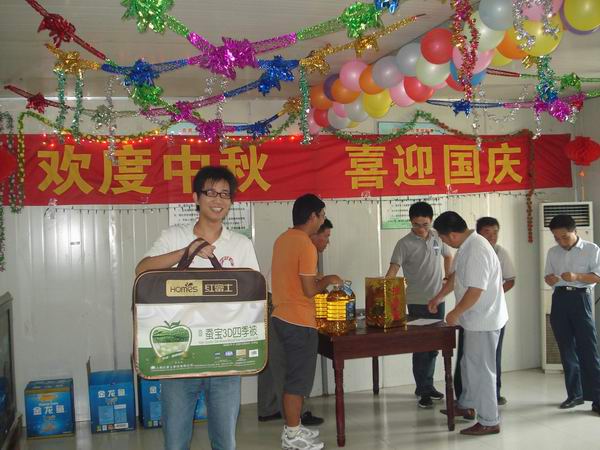 9月16日晚,当夜幕降临时,滨江大道项目部电视厅内仍传出一阵阵欢歌笑语,厅内张灯结彩,彩球飞扬,一条条彩带在灯光的辉映下闪烁着耀眼的光芒,显得热闹非凡,项目部工会在此正举办一场“欢度中秋·喜迎国庆”摸奖活动。 这次摸奖的奖项设一等奖一个,二等奖两个,三等奖三个,参与奖若干。 在此期间,该项目部还组织了篮球赛、足球赛等文体活动,通过开展丰富多彩的文化娱乐活动,使奋战在异地他乡的十七冶人感受到集体的温暖和家的温馨。