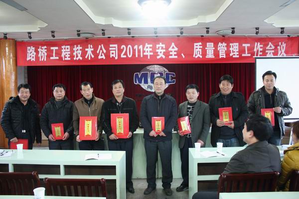 会上,公司对2010年度安全、质量管理的先进集体和个人进行了表彰,并对2010年四季度劳动竞赛胜出项目部给予了兑现。