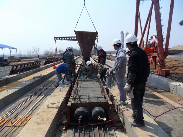 3月26日上午,南京绕越高速公路工程首件先张法预应力混凝土空心板梁顺利浇筑完成。 南京绕越高速公路工程预制空心板梁桥共7座,预制先张法空心板梁工程量共546片。随着先张法空心板梁首件工程的顺利浇筑,南京绕越项目将以“高效严谨、 精细务实”的企业作风,发扬拼抢赶超的精神,确保桥梁工程工期节点的按时完成。