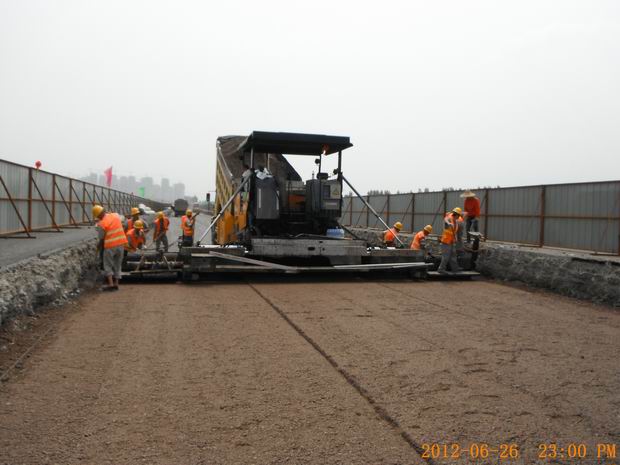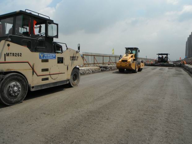 通过精心组织,5月7日试验段正式动工,从接到施工命令到正式破土动工仅用了短短的四天时间。项目部自进场以来,施工进度一直位居全线首位,临时设施建设也进展迅速,5月12日率先完成了项目部的临时征地手续,5月13日开始建设,6月6日大临设施全线第一个通电,短短的24天就具备了入住条件。该项目修建于车流量较大的交通主干线沈营大街上,施工过程中涉及三次交通疏导与道路封闭,道路施工存在巨大地安全隐患,项目部在工程进度、交通畅行、安全施工的巨大压力下,积极开展与路政、业主、政府等单位的协调工作,从而制定了可行的交通封闭和疏导施工方案。工程实施中,专职安全人员24小时对现场安全隐患进行排查,对交通拥挤进行疏通。项目业主在6月现场办公会上对该项目施工进展情况给予了一致好评,在7月市监督站组织的3天质量大检查中,项目质量控制亮点数量排名全线第一,检查组尤其对该项目级配碎石层及水泥稳定碎石层施工质量给予了好评。