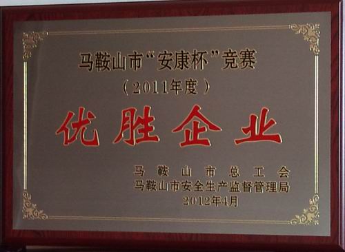 日前,马鞍山市总工会、市安全生产监督管理总局对2011年度“安康杯”竞赛活动先进集体进行表彰,路桥工程技术公司获得马鞍山市“安康杯”竞赛优胜企业荣誉称号。
