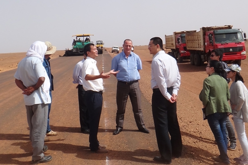 肖伟处长一行实地查看了Ⅰ标和Ⅱ标项目全程路段施工现场,项目经理陈道贵简要介绍了十七冶的企业性质、规模、营业收入及公司目前海外项目的战略布局和拓展西非市场的谋划。肖伟处长一行在认真听取项目经理关于项目进展、资金、质量、安全以及后续施工计划安排、当前存在的问题等情况汇报后,对项目部能在高温酷热、沙尘暴频发等恶劣的自然环境下,克服诸多困难,采取有效措施有力地推进工程建设,深受业主的认可和称赞给予了高度评价,同时希望与中国十七冶集团这样有实力的企业保持长期合作伙伴关系,双方还就西非市场的战略合作问题进行了深入的沟通交流。