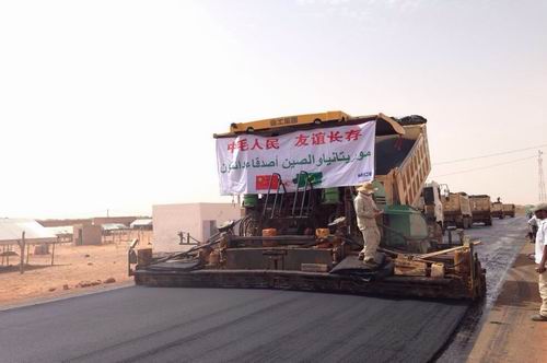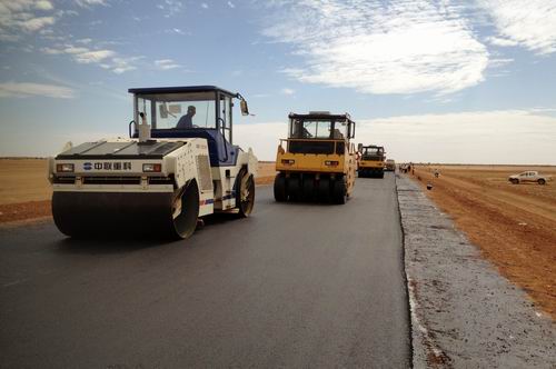 抓过程。为了确保工程质量,雕凿优质精品工程,项目部仔细进行实地勘察,细致研究设计图纸,认真斟酌施工方案,经过与业主和监理的沟通协商,合理调整技术方案,由原来的混合料基层施工改为天然料施工,有效减少了设备投入,节约施工成本,加快了施工进度。大胆进行技术创新,在施工期间灵活运用自主创新的“焖料法、炒地皮、筏板法”等施工工艺,不断突破制约施工瓶颈,多次打破了毛塔当月产量的最高记录,在毛塔国家交通部多次的综合检查中,工程施工质量、进度受到高度评价,被认为是毛塔国内质量最好的公路,被交通部确定为“毛塔第一路”。