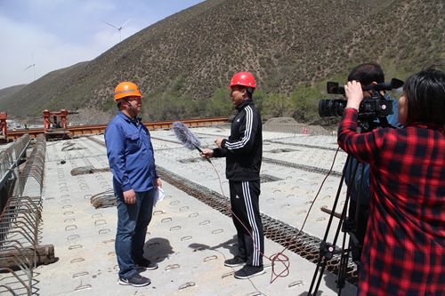 5月11日,内蒙古赤峰市林西县电视台采访报道公司承建的国道306线林西至大水菠萝段公路工程建设情况。