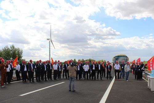 日前,中冶内蒙古高速公路指挥部邀请通辽市交通局、中冶内蒙建投有限公司、业主和监理单位以及指挥部所属5个在建项目共计 100余人到公司承建通辽至鲁北高速公路工程项目观摩沥青路面上面层施工工艺及质量控制。