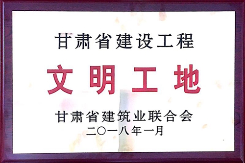 项目自开工建设以来,就把创建甘肃省省级文明工地作为创誉目标,制订详细切实的创建方案,认真策划并严格落实省市“文明工地”相关规定,在施工中严格按高标准施工,实施精细化管理、标准化施工、规范化操作,围绕各项创建任务多措并举,力创精品,积极营造洁净、绿化、标准的施工现场,在施工现场安全生产达标的基础上,进一步提高文明施工水平和安全生产水平,树立了良好的企业形象。2017年10月30日顺利通过了甘肃省建筑业联合会的复审,复审专家组称赞项目部在项目管理、工程进度、质量安全、文明施工等各方面工作出色,在兰州建筑行业领域树立了标杆,最终被授予“甘肃省建设文明工地”荣誉称号。