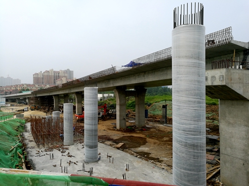 为保证跨淠河总干渠桥梁工程梯坡道墩柱砼浇筑,项目部科学组织、精心策划、合理安排、细化分工、明确责任;进一步加强与业主、监理等相关单位的沟通与协调,积极克服工期紧、任务重、施工环境复杂等诸多不利因素影响,各项工作稳步推进;科学配置资源,优化施工方案,合理调配人员、材料、机械设备。在施工过程中,为了确保混凝土浇筑质量,重点监控混凝土原材料的进场质量,强化墩身钢筋绑扎的安全性和立模的稳性板,严格执行施工规范要求;加强过程控制,从每道工序,每个细节着手,严格过程控制实行旁站监督,顺利按期完成全部桥梁墩柱施工,为确保实现“10.1”主体工程完工目标奠定坚实的基础。