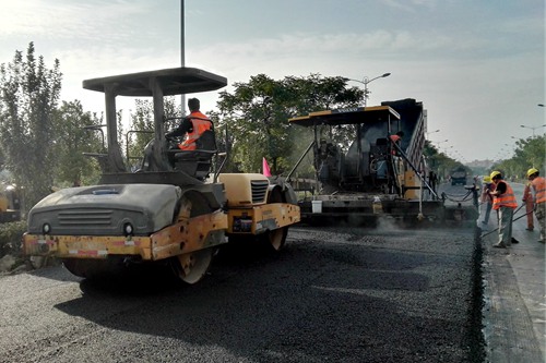 9月30日,公司承建的泗县赤山路提升改造工程顺利完成沥青下面层试验段铺筑。