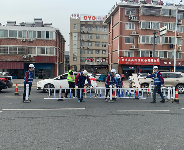 3月16日,“宁博一体化”项目援助博望区政府修建防疫监测站点交通护栏及减速带。项目部迅速派遣多个部门人员,调动所有车辆前往防疫站点,进行护栏搭建指挥和搬运调整。鉴于防疫站点缺乏照明条件,项目部再次紧急运输减速带和工具零件,全力研究嵌装电线技术问题,将电线成功装嵌在减速带下,为防疫工作者创造了良好的照明条件。